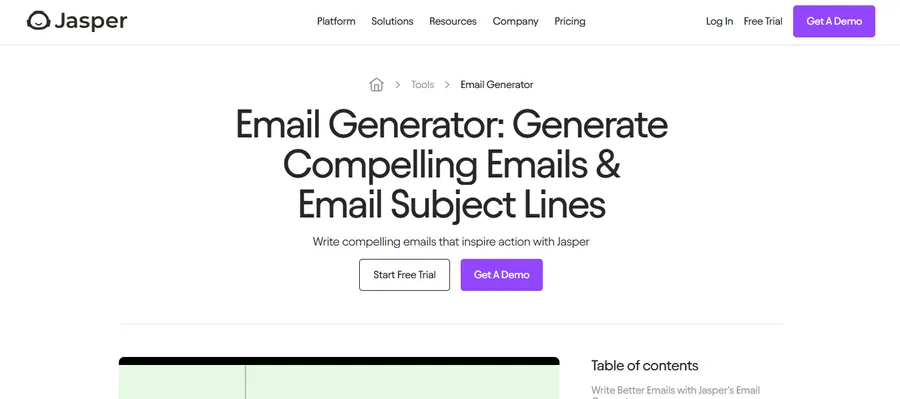 Jasper positions itself as a premium AI writing partner, and its Email Generator focuses on creating high-converting, on-brand emails for marketing and sales professionals, leveraging sophisticated templates and Brand Voice features.